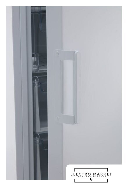 отдельностоящий, без No Frost, электронное управление, класс A+, полезный объём: 267 л (148 + 119 л), перенавешиваемые двери, лоток для яиц, 59.5x62.9x162 см, белый