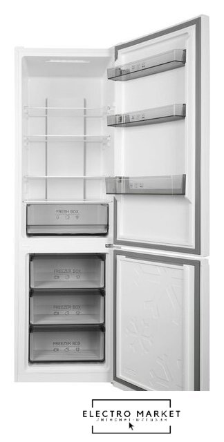 отдельностоящий, полный No Frost, электронное управление, класс A++, полезный объём: 415 л (267 + 148 л), инверторный компрессор, зона свежести, лоток для яиц, отделка: стекло, 78.2x63x182.5 см, белый