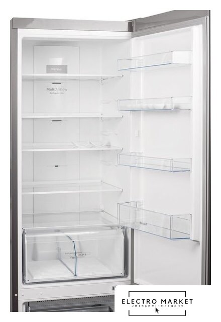 отдельностоящий, полный No Frost, электронное управление, класс A, полезный объём: 368 л (263 + 105 л), зона свежести, перенавешиваемые двери, складная полка, лоток для яиц, 59.5x65x200 см, белый
