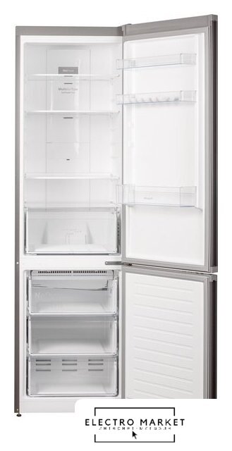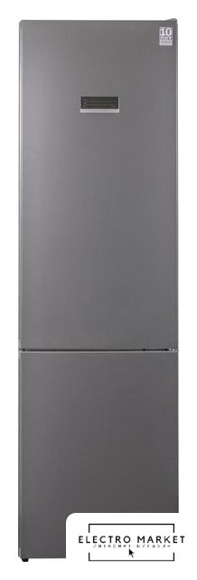 отдельностоящий, полный No Frost, электронное управление, класс A, полезный объём: 368 л (263 + 105 л), зона свежести, перенавешиваемые двери, складная полка, лоток для яиц, 59.5x65x200 см, серебристый