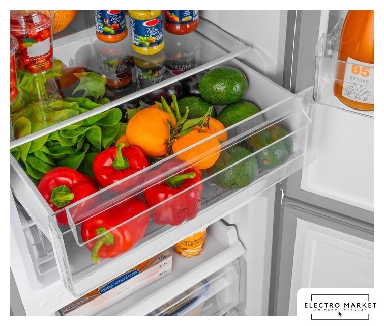 отдельностоящий, полный No Frost, электронное управление, класс A++, полезный объём: 415 л (267 + 148 л), инверторный компрессор, зона свежести, лоток для яиц, 78.2x63x182.5 см, серый