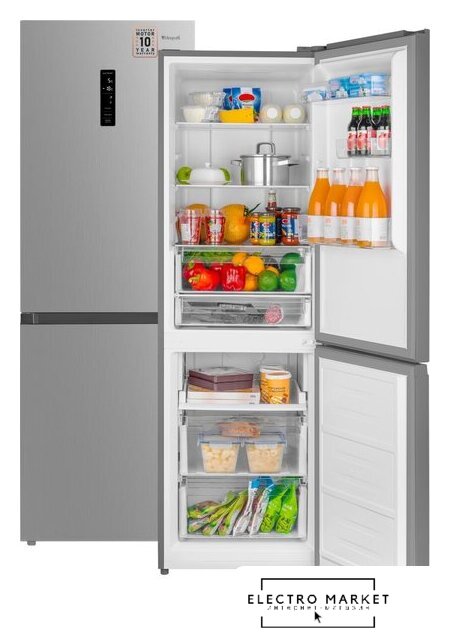 отдельностоящий, No Frost (морозильная камера), электронное управление, класс A++, полезный объём: 360 л (266 + 94 л), инверторный компрессор, перенавешиваемые двери, подставка-лоток для бутылок, лоток для яиц, 60.9x67.5x201.5 см, серебристый