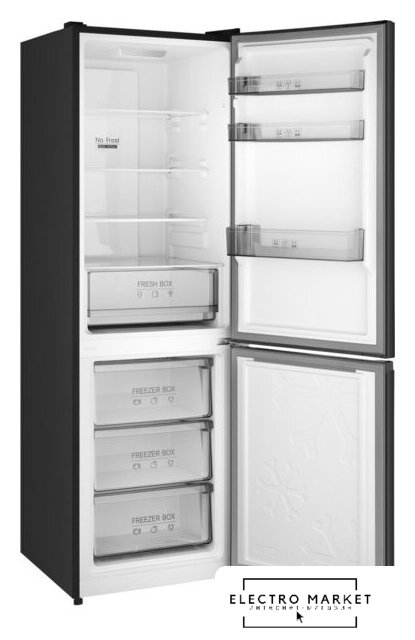 отдельностоящий, полный No Frost, механическое управление, класс A, полезный объём: 303 л (213 + 90 л), перенавешиваемые двери, лоток для яиц, 59.5x64x202.5 см, серебристый