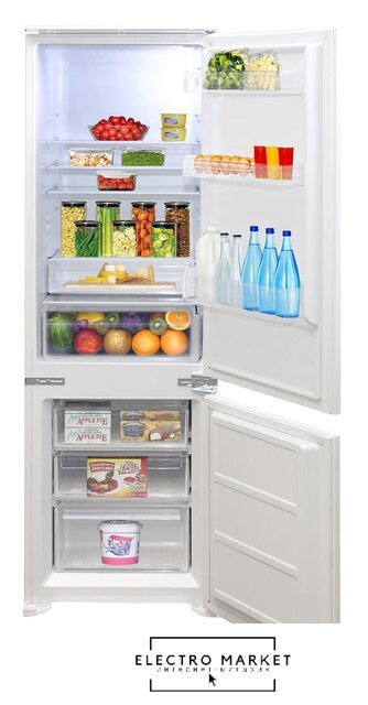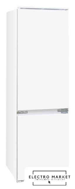 встраиваемый, полный No Frost, электронное управление, класс A+, полезный объём: 238 л (182 + 56 л), перенавешиваемые двери, лоток для яиц, 54x54x176.9 см, белый