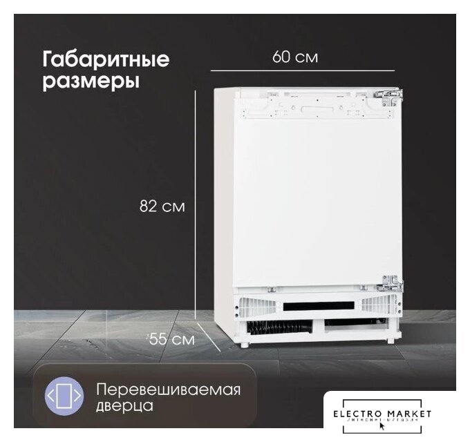встраиваемый, без No Frost, механическое управление, класс A+, полезный объём: 90 л, перенавешиваемые двери, 59.5x54.8x81.2 см, белый