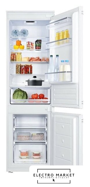 встраиваемый, без No Frost, электронное управление, класс A+, полезный объём: 270 л (198 + 67 л), перенавешиваемые двери, лоток для яиц, белый