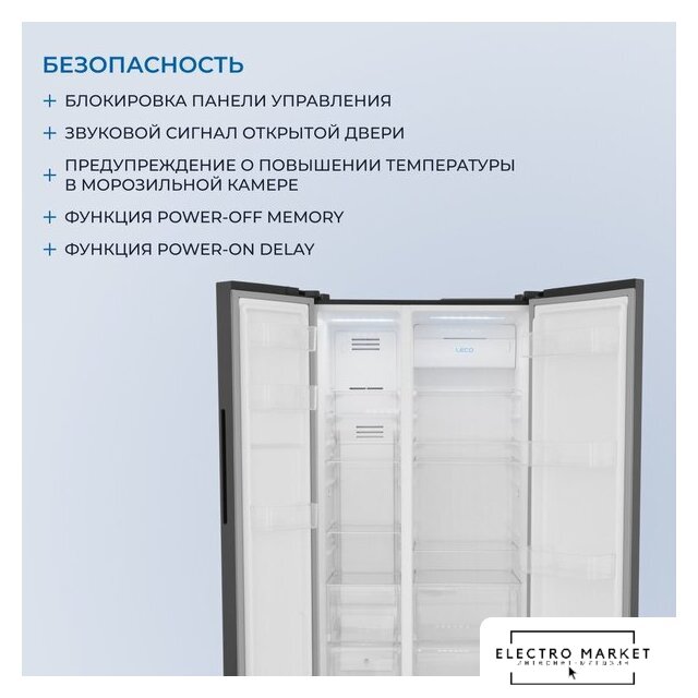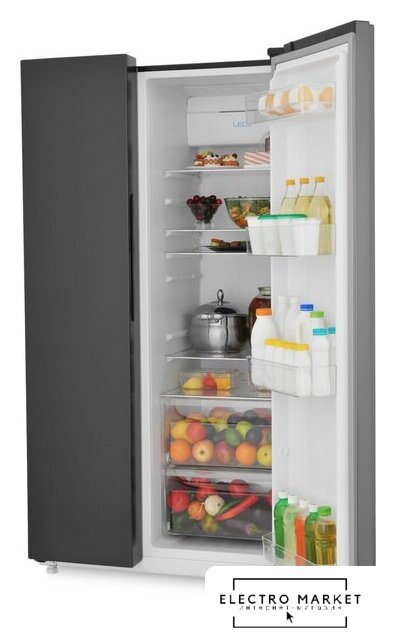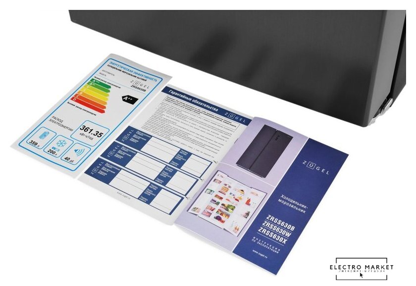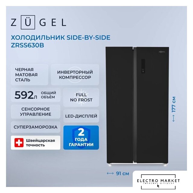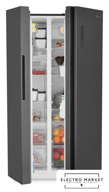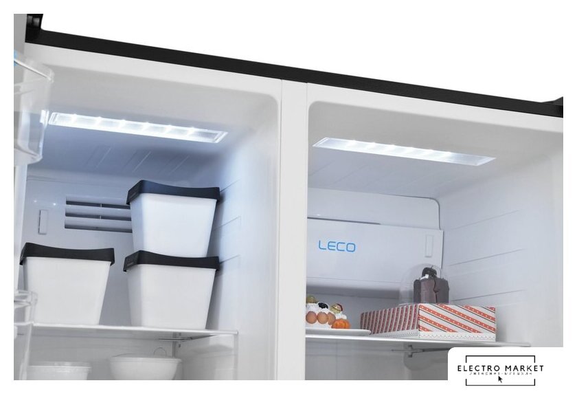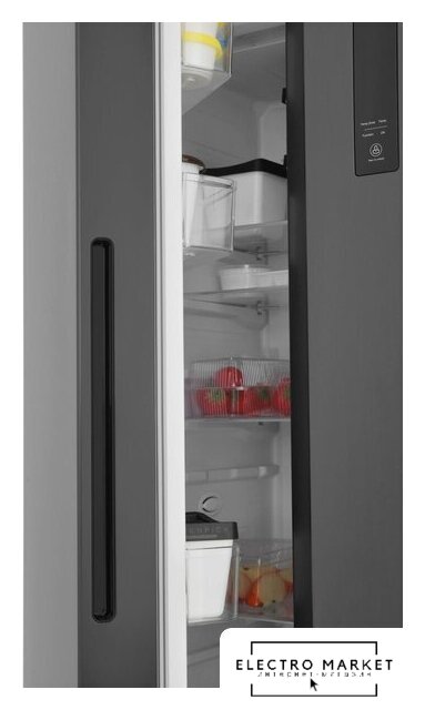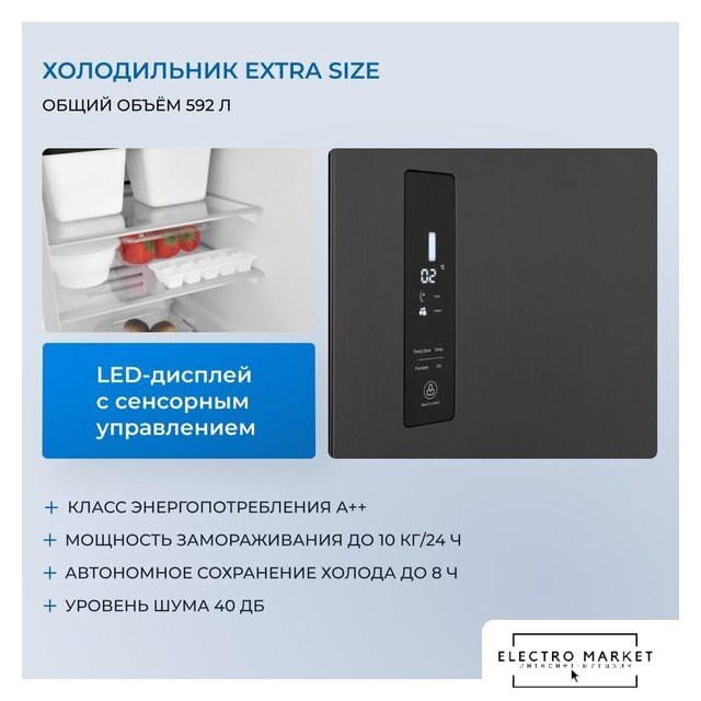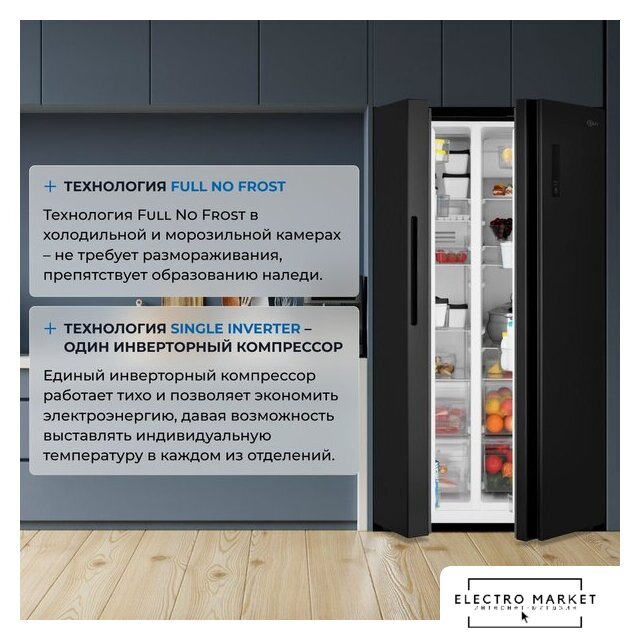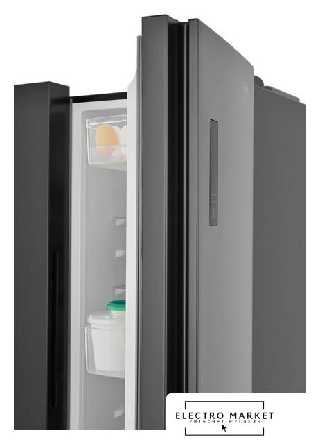 отдельностоящий, полный No Frost, электронное управление, класс A++, полезный объём: 544 л (353 + 191 л), инверторный компрессор, диспенсер, лоток для яиц, 91.5x67x178.6 см, черный