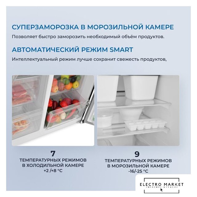 | Режимы и функции | суперзаморозка, независимая регулировка температуры, сигнал открытой двери, блокировка от детей |