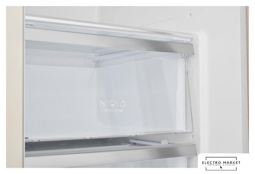 отдельностоящий, No Frost (морозильная камера), сенсорное управление, полезный объём: 361 л (258 + 103 л), зона свежести, перенавешиваемые двери, складная полка, лоток для яиц, 59.7x67.5x201.5 см, темная сталь