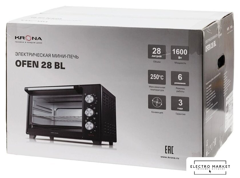 электрический, мощность духовки 1600 Вт, 38 л, конвекция, конфорки, вертел