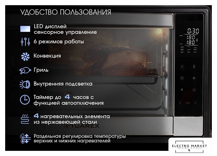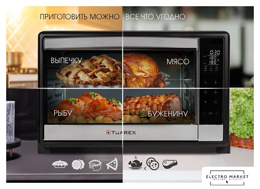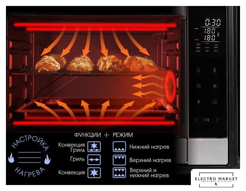 электрический, мощность духовки 1500 Вт, 25 л, конвекция, вертел