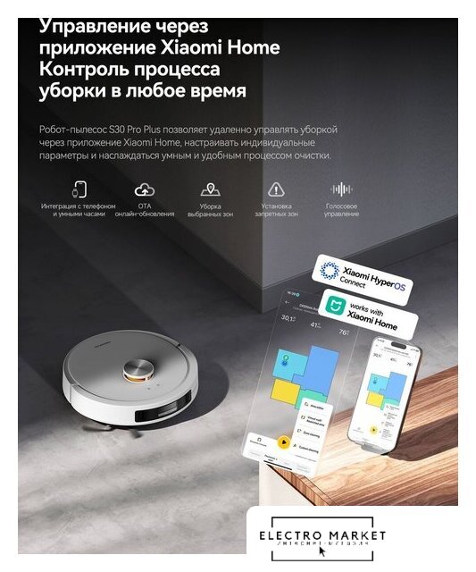 влажная уборка, Mi Home, сила всасывания 13000 Па, пылесборник 0.26 л, с турбощеткой, навигация: контактный бампер, лидар, датчики перепада высоты, план нескольких этажей, база самоочистки