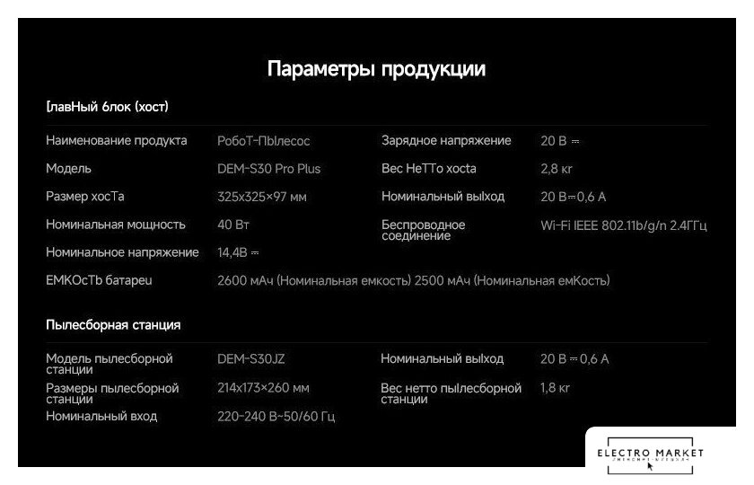| Комплектация | Робот-пылесос, Док станция самоочистки, Щетка для очистки, Руководство пользователя |