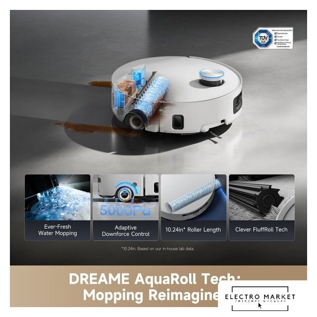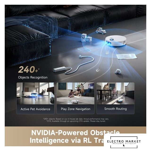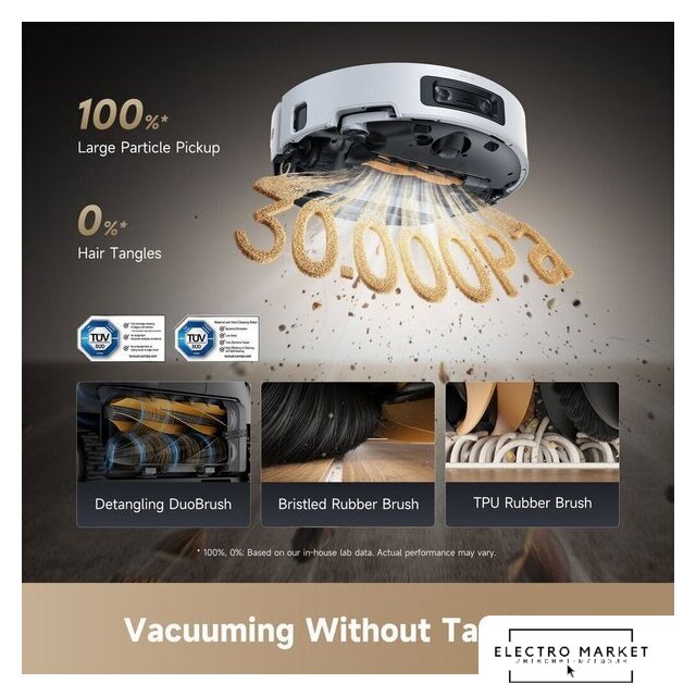 влажная уборка, фирменное приложение, сила всасывания 20000 Па, пылесборник 0.4 л, с турбощеткой, навигация: контактный бампер, лидар, камера TOF (3D), датчики перепада высоты, лазерные датчики препятствий, план нескольких этажей, база самоочистки