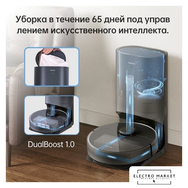 влажная уборка, Яндекс Алиса, сила всасывания 2700 Па, с турбощеткой, навигация: контактный бампер, лидар, датчики перепада высоты, база самоочистки
