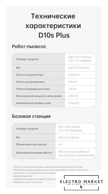 влажная уборка, мощность 40 Вт, сила всасывания 4000 Па, пылесборник 0.25 л, с турбощеткой, навигация: контактный бампер, лидар, датчики перепада высоты, план нескольких этажей, база самоочистки