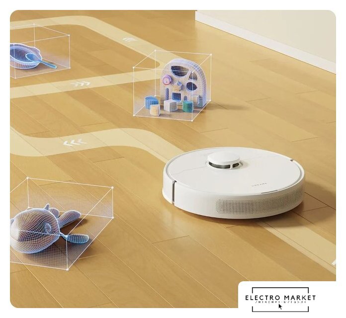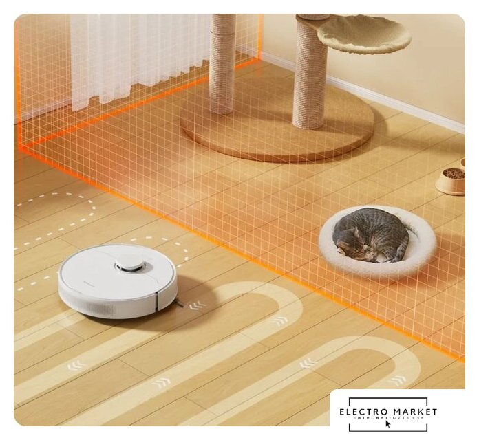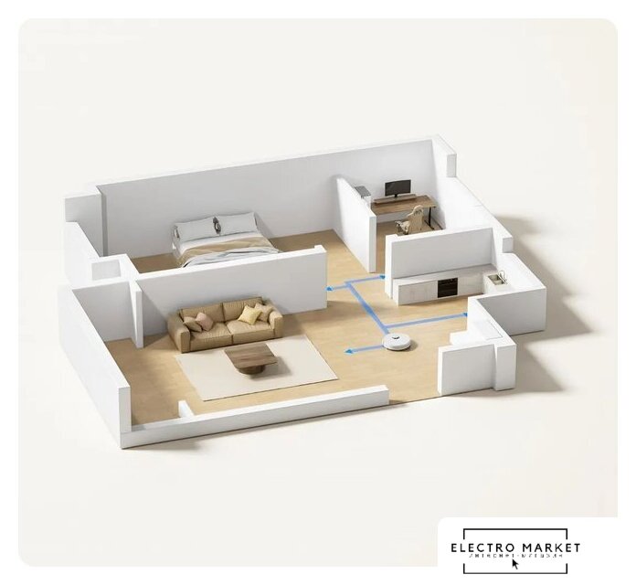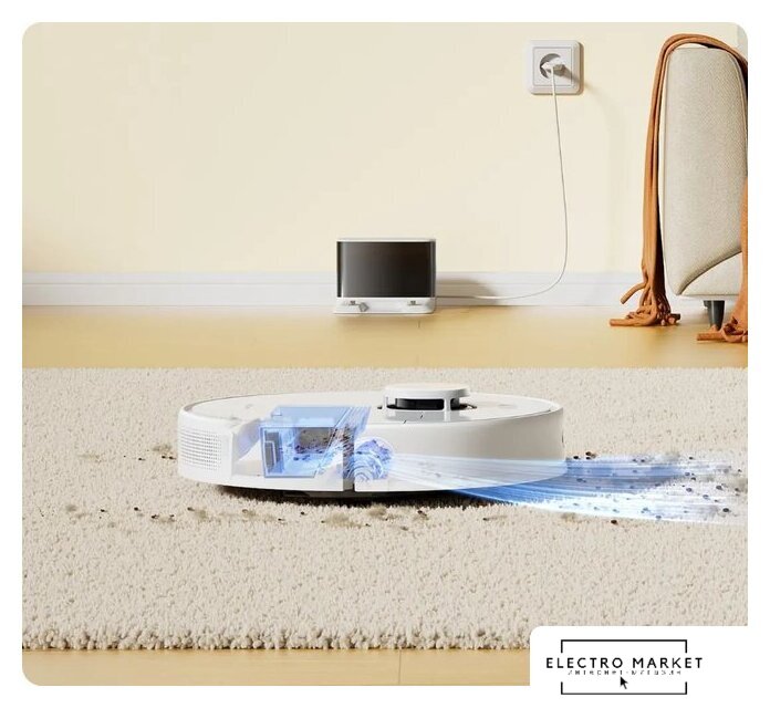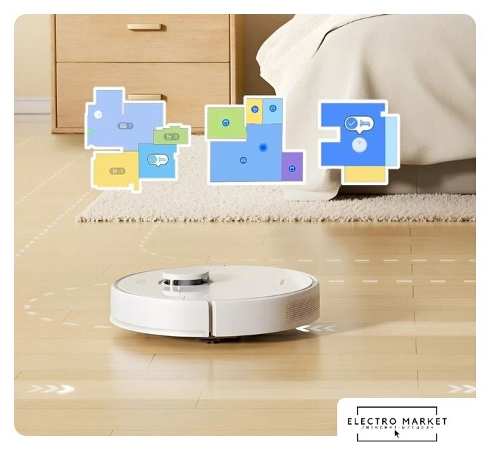 влажная уборка, фирменное приложение, мощность 50 Вт, сила всасывания 4000 Па, пылесборник 0.3 л, с турбощеткой, навигация: контактный бампер, лидар, датчики перепада высоты, план нескольких этажей