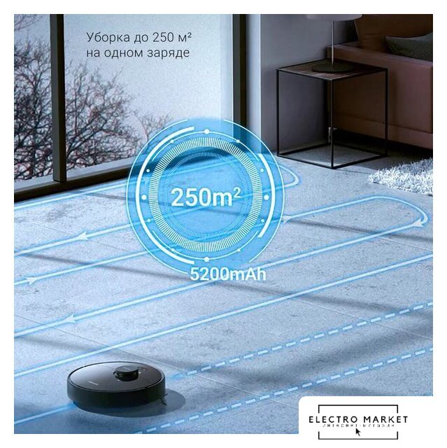 влажная уборка, фирменное приложение, мощность 50 Вт, сила всасывания 4000 Па, пылесборник 0.3 л, с турбощеткой, навигация: контактный бампер, лидар, датчики перепада высоты, план нескольких этажей