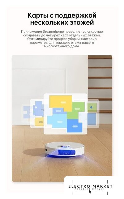 влажная уборка, сила всасывания 2500 Па, пылесборник 0.5 л, с турбощеткой (разборная), навигация: лидар, датчики перепада высоты, план нескольких этажей