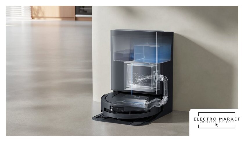 | Функциональные особенности базы | мойка швабры, сушка швабры, самоочистка пылесборника робота, заправка робота водой |