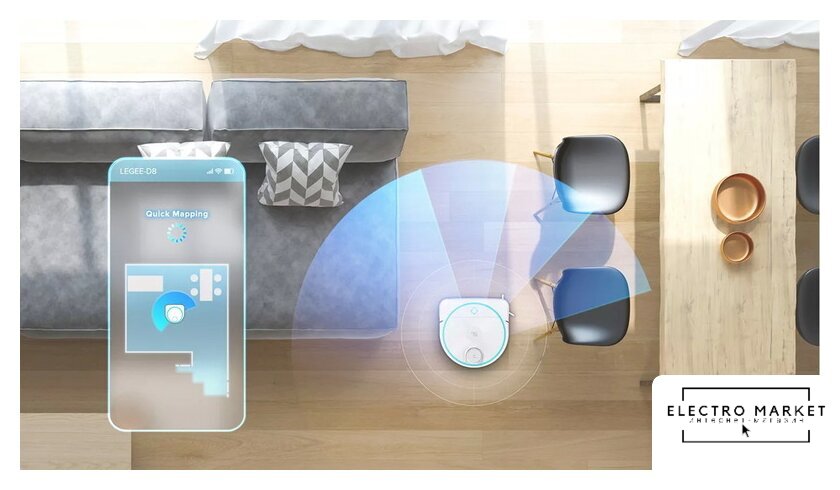 влажная уборка, фирменное приложение, сила всасывания 10000 Па, с турбощеткой, навигация: контактный бампер, лидар, датчики перепада высоты, лазерные датчики препятствий, база самоочистки