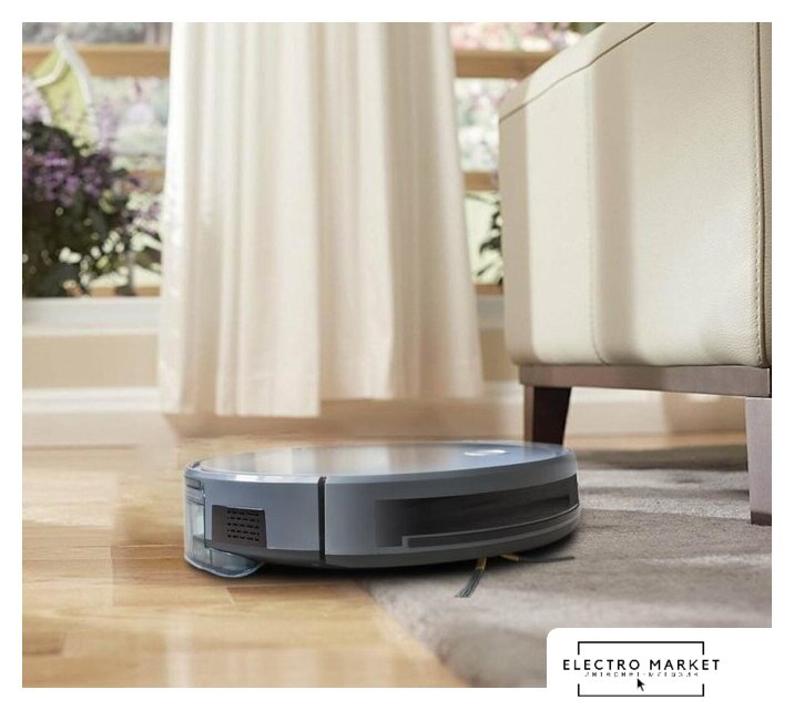 влажная уборка, мощность 100 Вт, пылесборник 0.5 л, с турбощеткой, навигация: контактный бампер, датчики перепада высоты