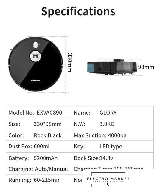 | Функциональные особенности пылесоса | локальная уборка, уборка по расписанию, виртуальная стена в приложении, автовозврат на базу |
