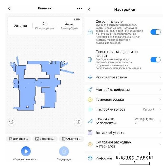 влажная уборка, пылесборник 0.6 л, с турбощеткой, УФ-лампа, навигация: контактный бампер, лидар, датчики перепада высоты, план нескольких этажей