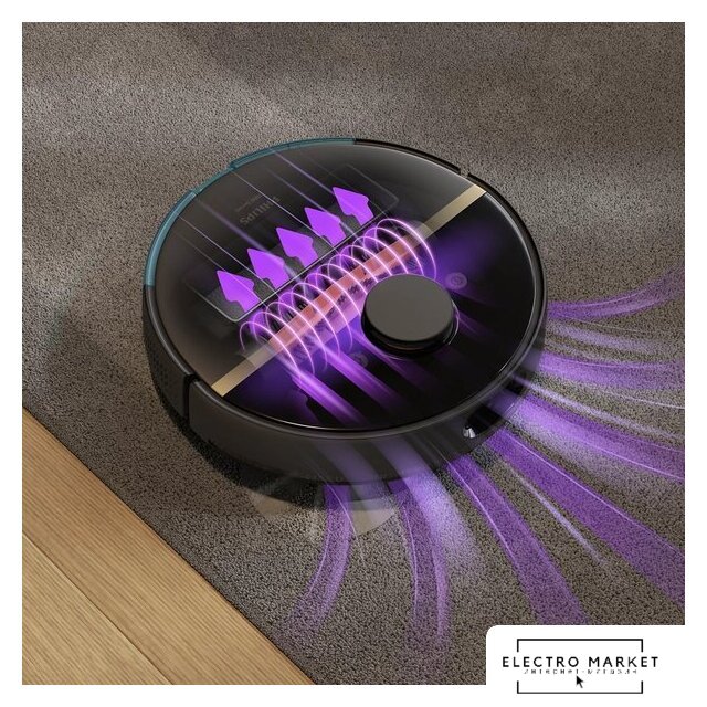 влажная уборка, сила всасывания 4000 Па, пылесборник 0.35 л, с турбощеткой, навигация: контактный бампер, лидар, датчики перепада высоты, план нескольких этажей