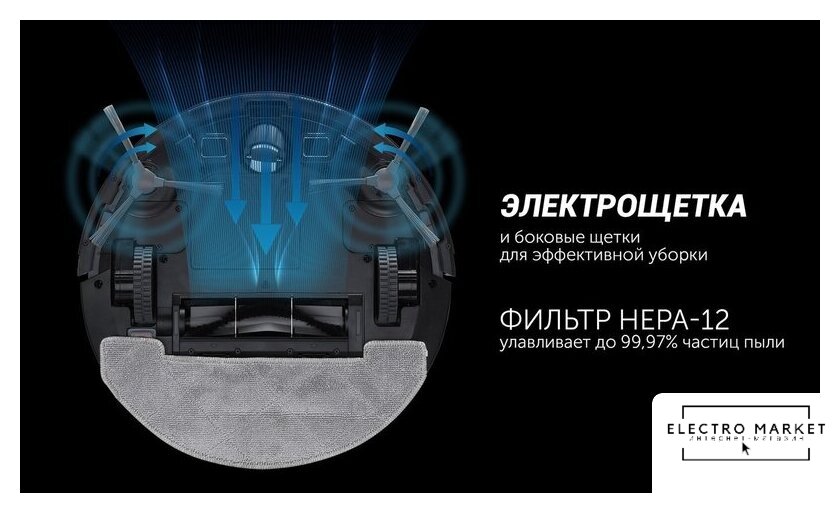 влажная уборка, фирменное приложение, сила всасывания 10000 Па, пылесборник 0.5 л, с турбощеткой, навигация: контактный бампер, лидар, датчики перепада высоты, лазерные датчики препятствий