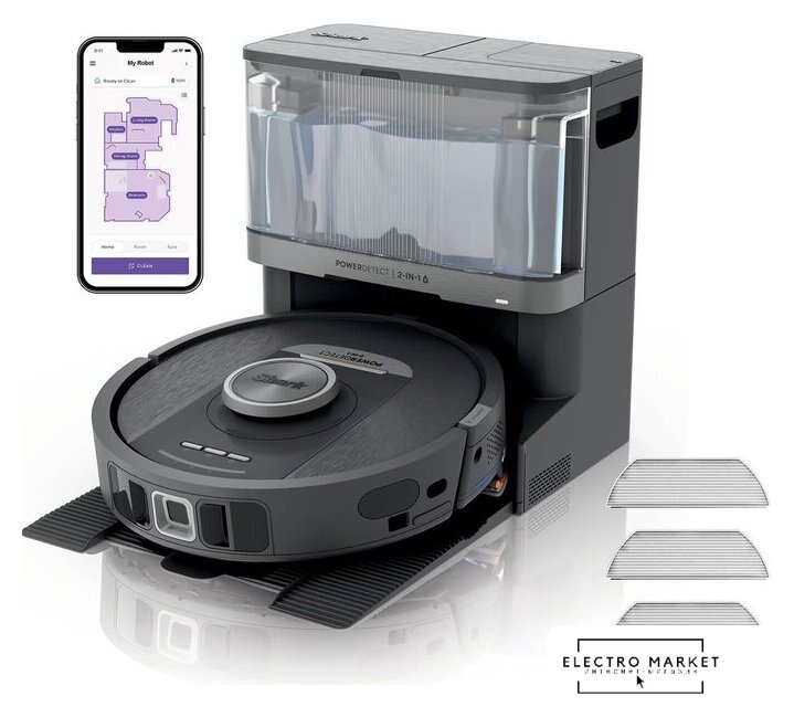 влажная уборка, фирменное приложение, сила всасывания 10000 Па, пылесборник 0.3 л, с турбощеткой, навигация: контактный бампер, лидар, камера TOF (3D), датчики перепада высоты, план нескольких этажей, база самоочистки