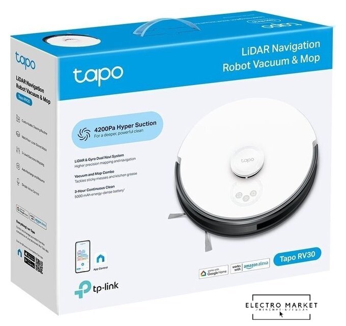 влажная уборка, мощность 30 Вт, сила всасывания 2700 Па, пылесборник 0.35 л, с турбощеткой, навигация: контактный бампер, лидар, датчики перепада высоты