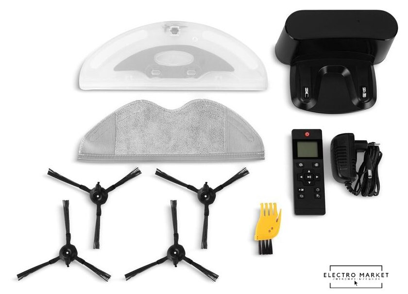 | Комплектация | Робот-пылесос – 1 шт.Зарядная станция – 1 шт.Сетевой адаптер – 1 шт.Боковые щётки – 2 шт.Пульт дистанционного управления – 1 шт.Насадка для влажной уборки пола – 1 шт.Тряпка из микрофибры – 2 шт.Магнитная лента – 1 шт.Щёточка для очистки – 1 шт.Инструкция по использованиюпрограммы TUYA SMART APP – 1 шт.Гарантийный талон – 1шт.Инструкция – 1 шт. |