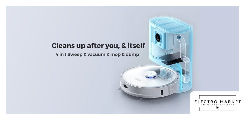 влажная уборка, сила всасывания 5000 Па, с турбощеткой, навигация: контактный бампер, лидар, датчики перепада высоты, лазерные датчики препятствий, база самоочистки