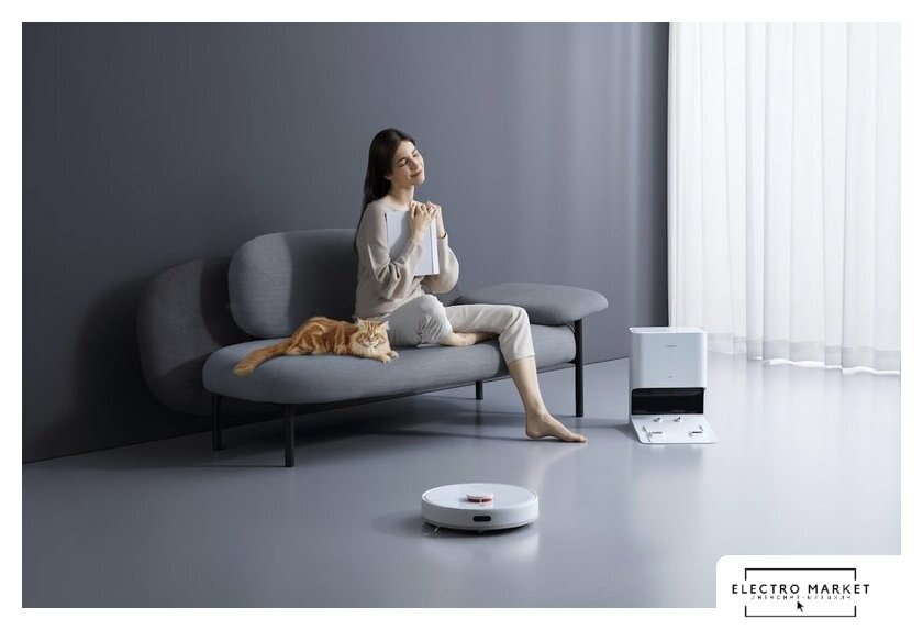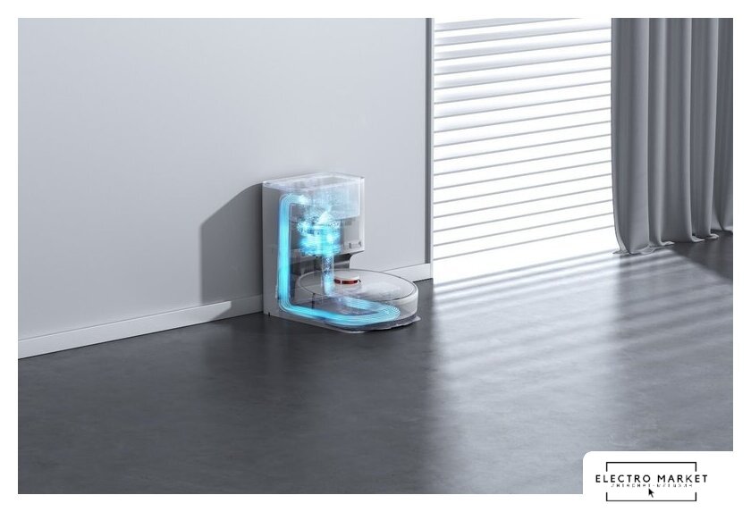 влажная уборка, мощность 46 Вт, сила всасывания 4000 Па, пылесборник 0.4 л, с турбощеткой, навигация: контактный бампер, лидар, датчики перепада высоты, база самоочистки
