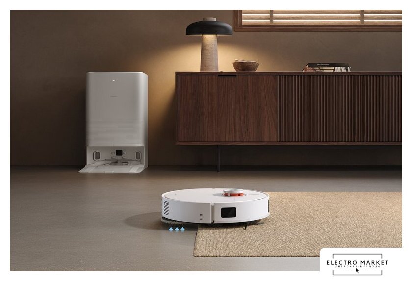влажная уборка, сила всасывания 7000 Па, пылесборник 0.35 л, с турбощеткой, навигация: контактный бампер, лидар, датчики перепада высоты, база самоочистки
