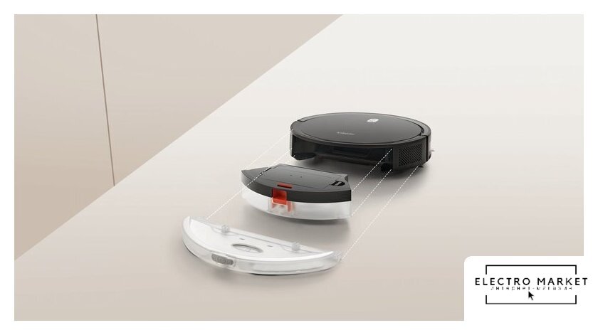 Комплектация | контейнер для влажной уборки, зарядная станция, адаптер питания, щеточка для очистки, документация, боковая щетка (2 шт.), ткань для влажной уборки, контейнер для сухой уборки |