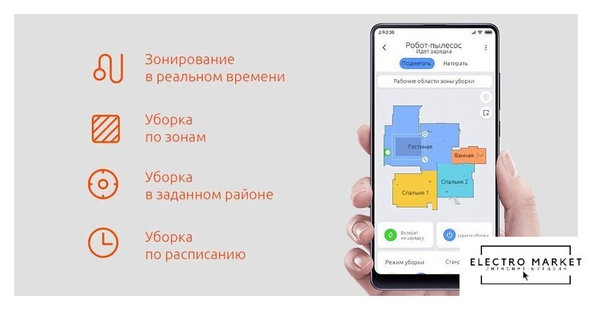 влажная уборка, Mi Home, сила всасывания 5500 Па, пылесборник 0.47 л, с турбощеткой, навигация: контактный бампер, лидар, датчики перепада высоты, план нескольких этажей
