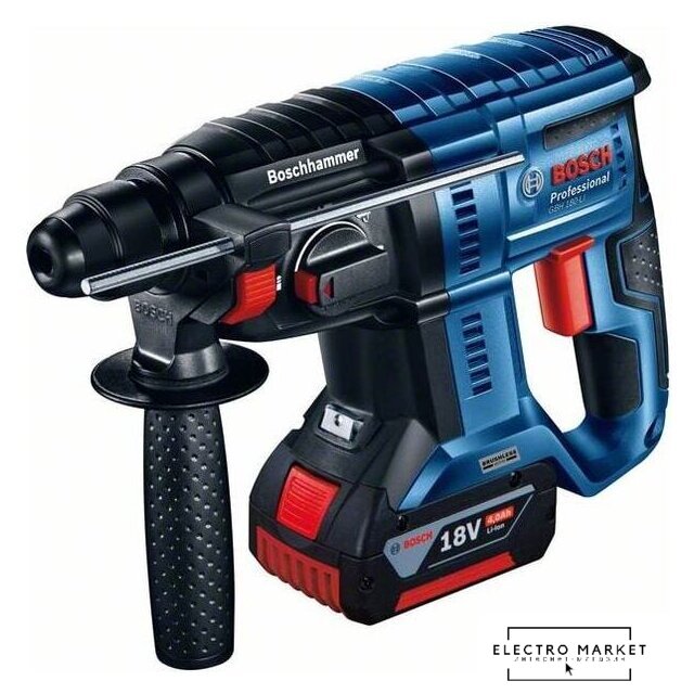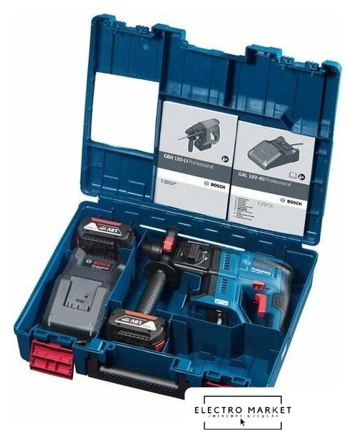 | Комплект поставки | - 2 аккумулятора GBA 18V 4.0Ah1 600 Z00 163;- Быстрозарядное устройство GAL 18V-40 Professional 1 600 A01 9RJ;- Дополнительная рукоятка 1 602 025 08X;- Салфетка (№ запасной части 1 619 200 413);- Ограничитель глубины 1 613 001 003- Кейс. |