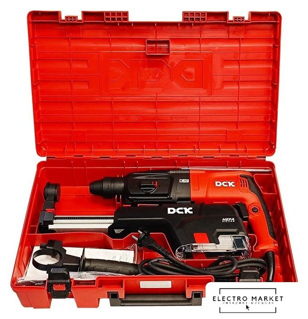 | Комплект поставки | - Перфоратор электрический- Дополнительная рукоятка- Ограничитель глубины- Система сбора пыли- Щетки графитовые- Упаковка:пластиковый кейс |