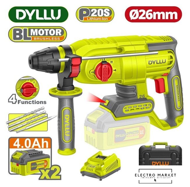 | Комплект поставки | - Перфоратор - 1 шт.- Аккумулятор DTLBP540 4,0 Ач - 2 шт.- Зарядное устройство DTFCP502 - 1 шт.- Дополнителная рукоятка - 1 шт.- Буры 6, 8, 10 мм. - 3 шт.- Долото - 1 шт.- Кейс |