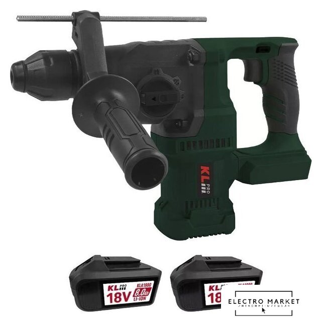 | Комплект поставки | - Перфоратор KLPRO KLPM18BH-80.- 2 аккумулятора Li-ion 18 В/8,0 Ач (в комплекте).- Зарядное устройство (4,5 А).- Сумка для переноски. |