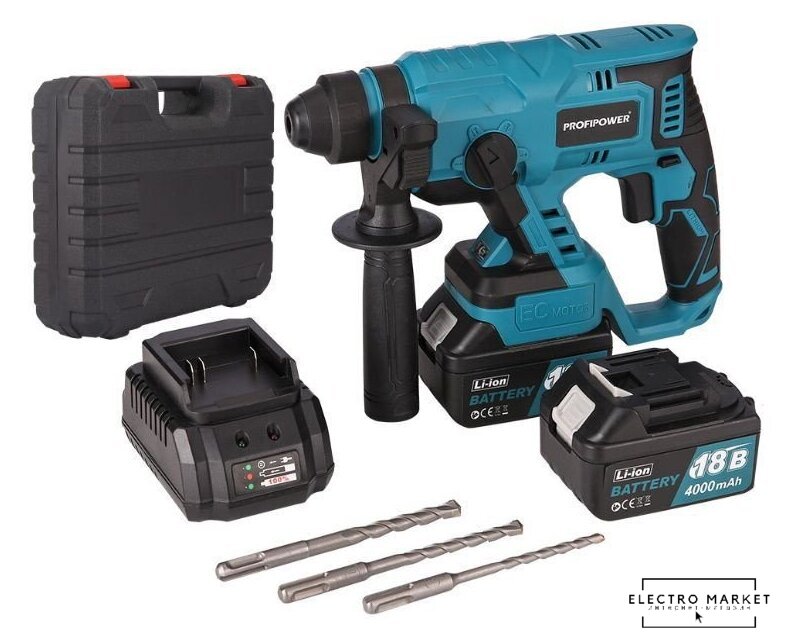 | Комплект поставки | - Перфоратор;- Аккумулятор - 2шт;- Глубиномер;- Зарядное устройство;- Боковая рукоятка;- Бур SDS plus 6*160;- Бур SDS plus 8*160;- Бур SDS plus 10*160;- Кейс;- Инструкции с гарантийным талоном. |