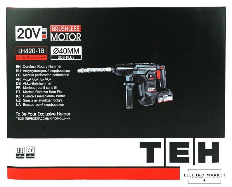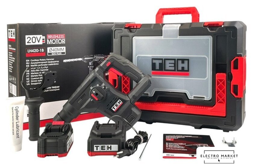 | Комплект поставки | - Перфоратор;, - Аккумуляторная батарея LB 4.0 Ач;, - Зарядное устройство LBC02;, - Рукоятка дополнительная;, - Ограничитель глубины сверления;, - Смазка для буров;, - Гаечный ключ;, - Руководство по эксплуатации;, - Пластиковый кейс STACK. |
