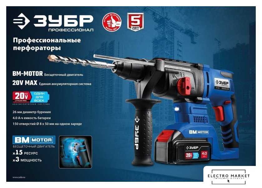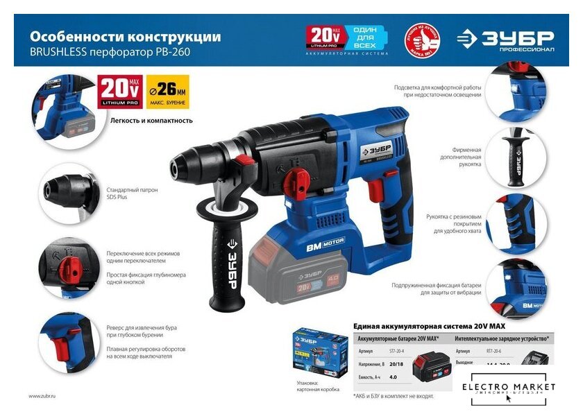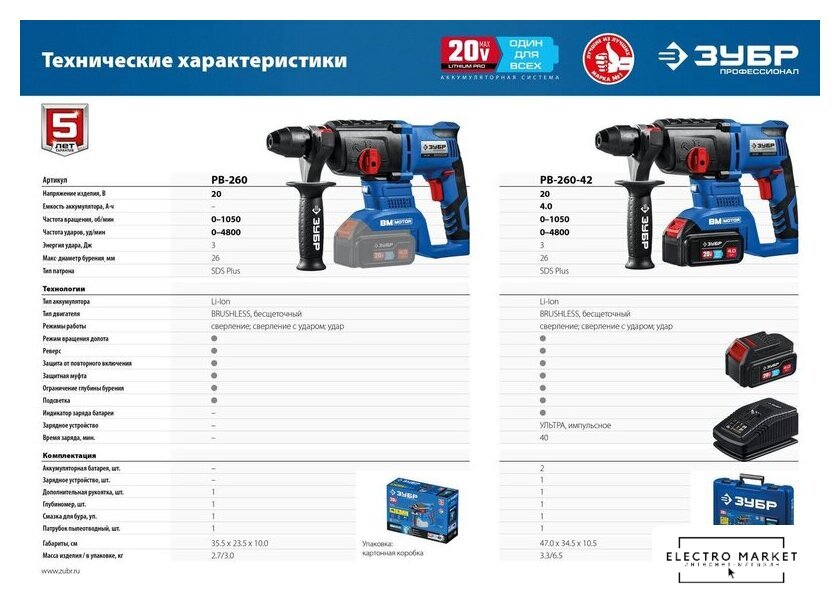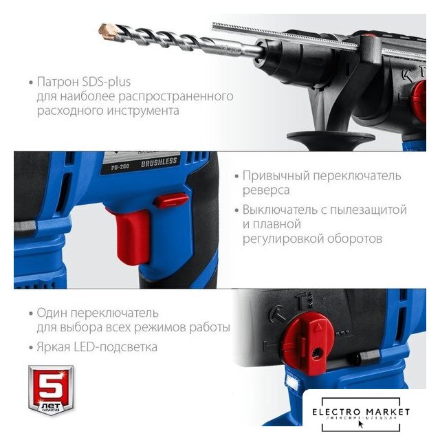 | Комплект поставки | ПерфораторРукоятка дополнительнаяГлубиномерСмазка для бураРуководство по эксплуатации |