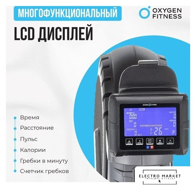 Показания на дисплее | время, калории, расстояние, количество гребков в минуту, счетчик гребков, пульс |