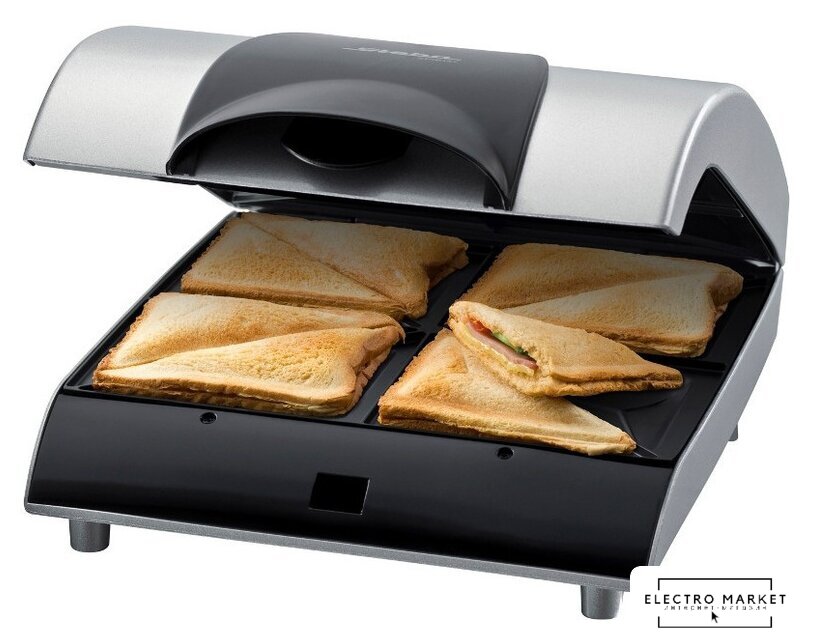 сэндвичница, 700 Вт, поверхность: гриль-пластина/форма для 2 ломтиков хлеба/вафельница, съемные плитки, черный/серый