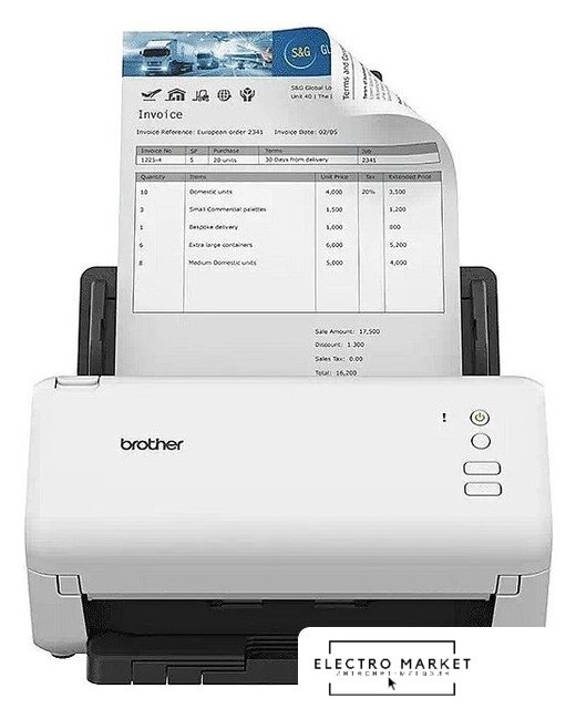 планшетный, CIS датчик, 600x600 dpi, 48 бит, формат A4, двустороннее сканирование, автоматическая подача, 40 стр/мин (ч/б), 40 стр/мин (цвет), дисплей, Ethernet, 285x379x632 мм, 5 кг