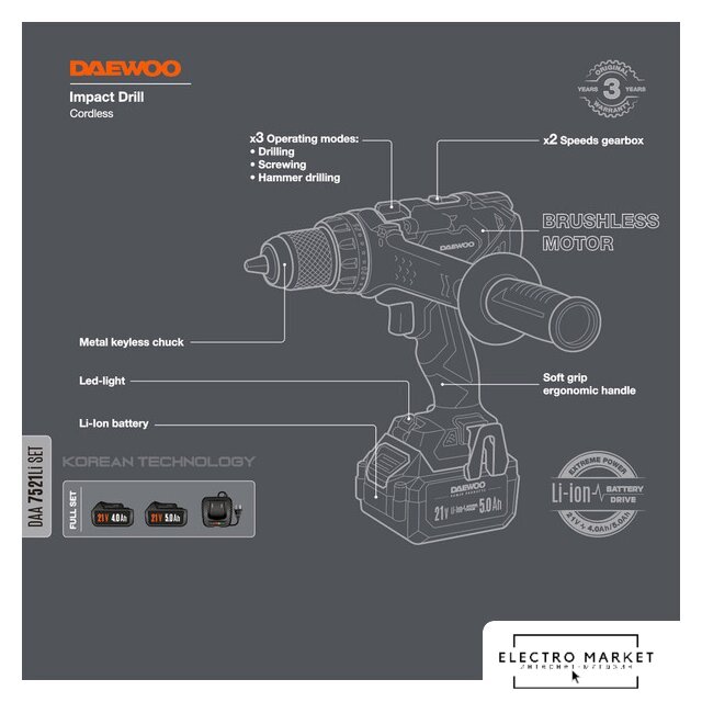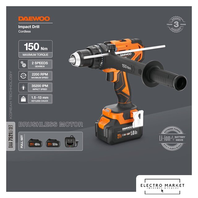 Комплектация | - Дрель-шуруповерт - 1 шт.- Аккумулятор 4,0 Ач - 1 шт.- Аккумулятор 5,0 Ач - 1 шт.- Зарядное устройство - 1 шт.- Дополнительная рукоятка - 1 шт.- Скоба для крепления - 1 шт.- Инструкция- Кейс |