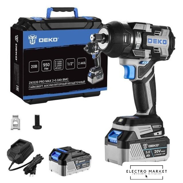 Комплектация | - Гайковерт - 1 шт.- Аккумулятор 5,0 Ач - 2 шт.- Зарядное устройство - 1 шт.- Скоба поясная - 1 шт.- Уплотнительное кольцо - 1 шт.- Штифт - 1 шт.- Руководство по эксплуатации.- Кейс. |